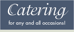 Whether you are planning a wedding, birthday, graduation, shower, or corporate event, we have menus available that will please all of your guests. If you have a more specific menu in mind, our staff will work with you to customize a menu to fit your needs. Contact us today to see how we can help make your next catered gathering a delight!